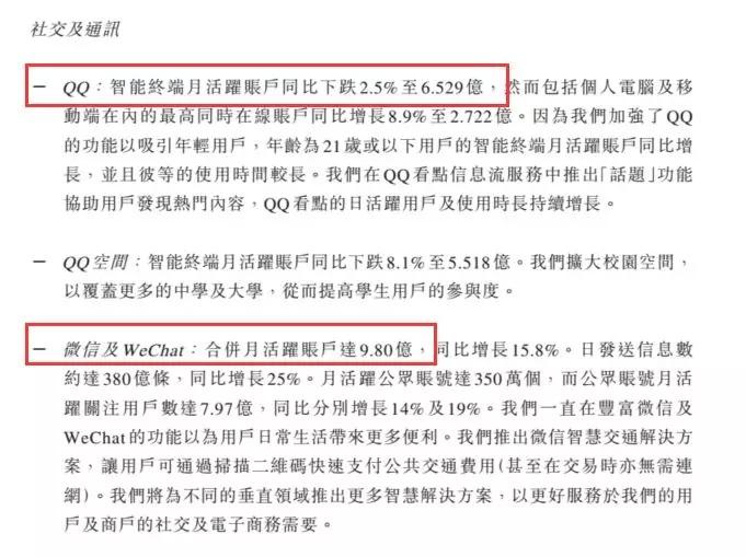 腾讯在财报中表示,年龄为21岁及以下QQ用户的智能终端越活跃账户同比增长,并且他们的使用时间较长,因为我们加强了QQ的功能以吸引年轻用户。