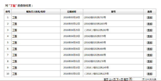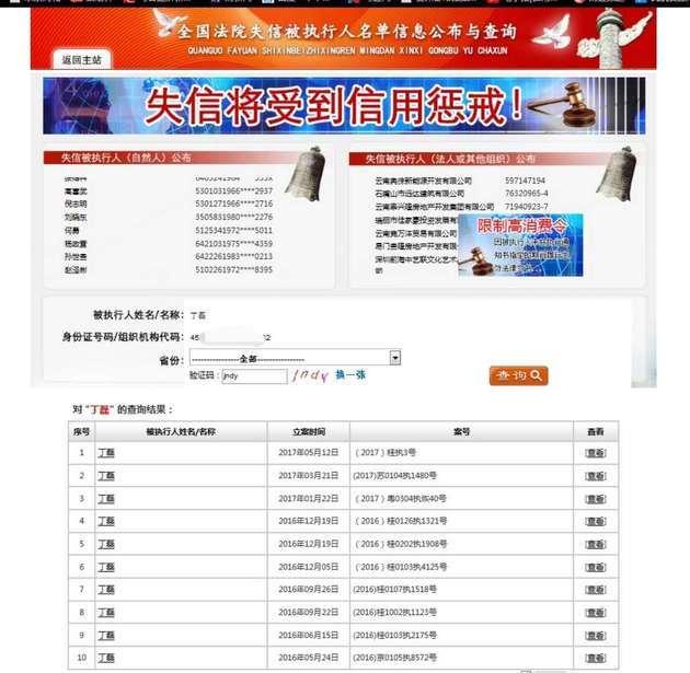 登陆最高人民法院的全国法院失信被执行人系统,每经影视记者输入该丁磊的身份证号,查询到丁磊在2015年~2017年间被31次列入失信被执行人名单,而且其中多是因欠债被法院要求偿还却拒不履行。