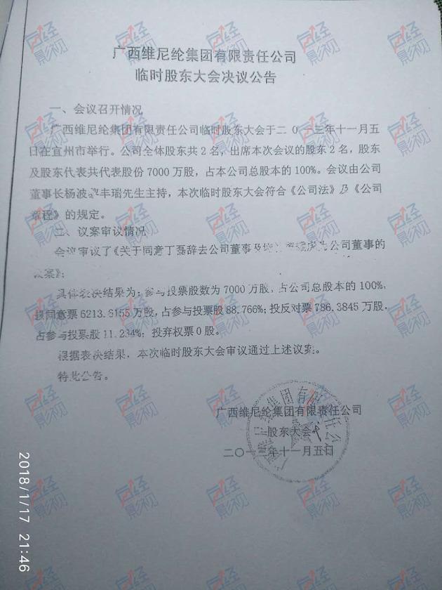 “但其实广维集团的总股本是7000万股,那怎么能说他收购了1961万股就控股了90%呢?应该也只占股20%多。”上述职工表示。他向每经影视记者出示了两份2013年的广维集团临时股东大会材料,文件显示“广维集团公司总股本7000万股”。“正因为广维集团引入丁磊,才有了后面给广维文华造成的麻烦。”