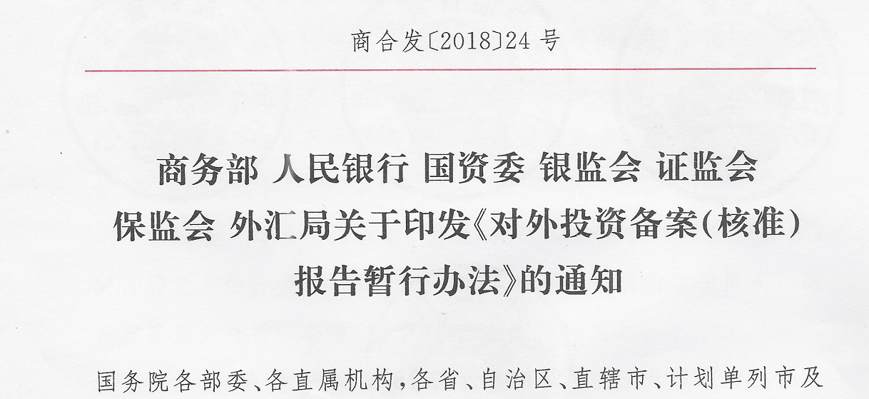 继发改委发布“11号令”之后,监管继续推出对外投资新政,近日,商务部、人民银行、国务院国资委、银监会、证监会、保监会、国家外汇局七部门联合制定了《对外投资备案(核准)报告暂行办法》。