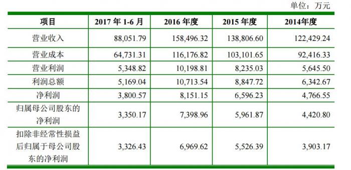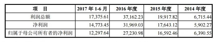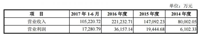 从业绩表现上看,伯特利2014年-2017年上半年,营业收入分别为8亿元、14.71亿元、22.12亿元、10.52亿元,净利润分别为5902万元、1.76亿元、3.2亿元、1.48亿元。