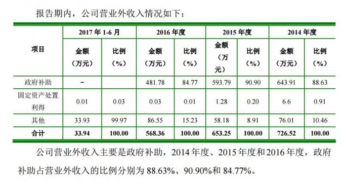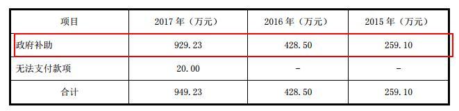 2015年-2017年,长城股份分别收到政府补助259.10万元、428.50万元和929.23万元,占净利润比例分别为4.95%、3.76%和5.24%。