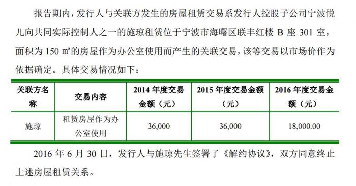 报告期内,爱婴室在2016年6月30日前存在一笔关联交易,期间,爱婴室旗下的控股子公司宁波悦儿向共同实际控制人施琼租赁了150平的房屋,但该房屋租赁关系与2016年6月30日解除。