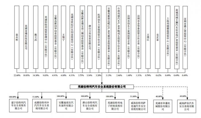 根据伯特利1月9日报送的招股说明书显示,目前公司股东合计20户,其中控股股东、实控人、董事长兼总经理袁永彬是美国国籍,持股8308.75万股,占比为22.60%,第二大股东奇瑞科技的控股股东为国有绝对控股企业——奇瑞控股,奇瑞科技持有发行人股份数量为6637.80万股,持股比例为18.05%。