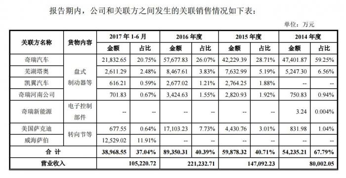 另外,报告期内伯特利存在较多的关联方及关联交易。发行人发生的关联销售金额为5.42亿元、5.99亿元、8.94亿元和3.90亿元,占营业收入的比重分别为67.79%、40.71%、40.39%和37.04%。