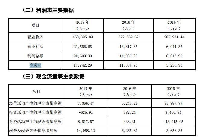 2015年-2017年,长城股份实现营业收入分别为28.90亿元、32.29亿元和45.84亿元,净利润分别为5236.90万元、11384.70万元和17742.29万元。