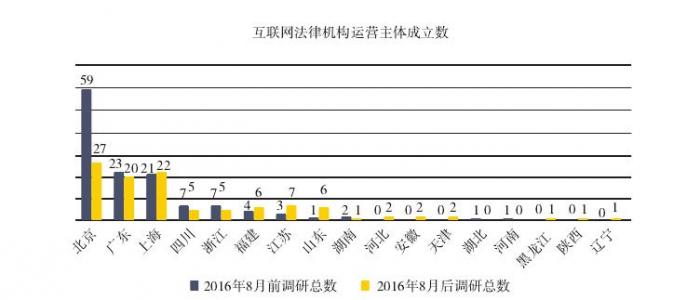 《报告》显示,2016年8月前调研的互联网法律机构涉及的互联网法律运营主体为129家,