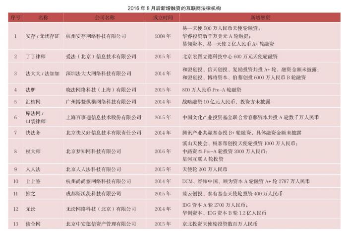自2016年8月以来,新设立的互联网法律机构几乎没有综合性的电商平台,大多数均将自己的服务定位在法律服务垂直领域的进一步细分上,以期实现以有限的资源将某一法律服务内容做到极致,并以此来抢占市场。