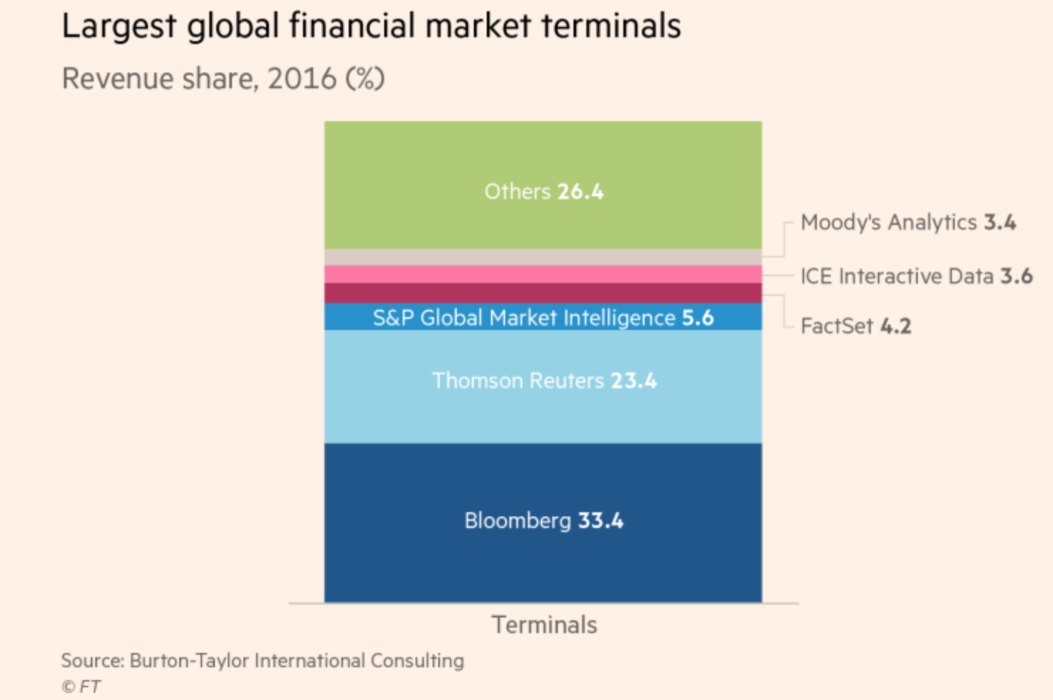 (全球金融市场终端份额分布 来源:英国金融时报)