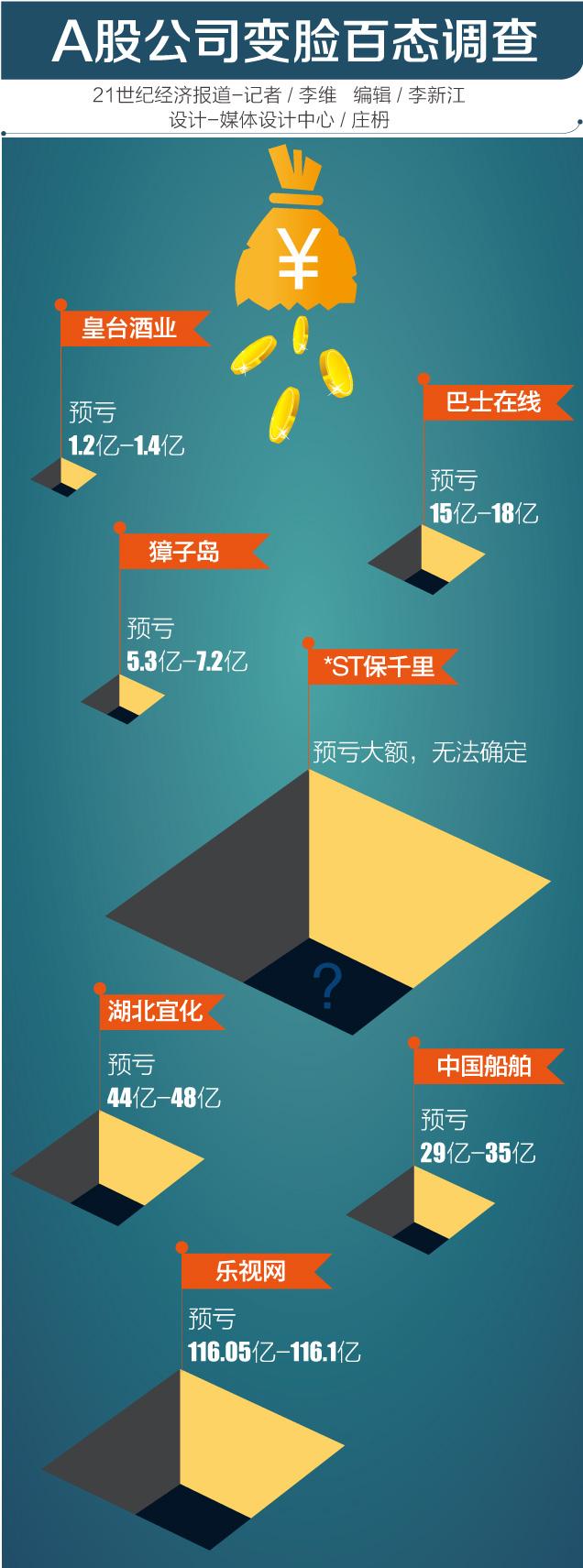 据21世纪经济报道记者不完全统计,包括巴士在线(002188.SZ)、保千里(600074.SH)及上述等公司在内,足以引发市场关注的巨亏公司数量已达10余家之多。