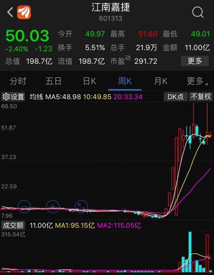 2月1日,江南嘉捷收报50.03元,跌2.4%,总市值198.7亿元。
