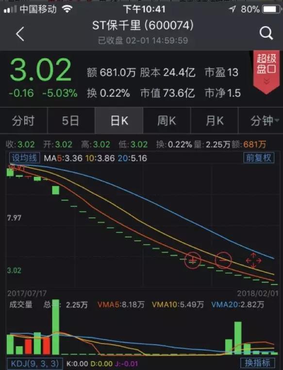 截止到2月1日,ST保千里刷新A股最长连续跌停纪录,连续第25个跌停。估计到2月2日开盘,有可能继续刷新跌停记录。