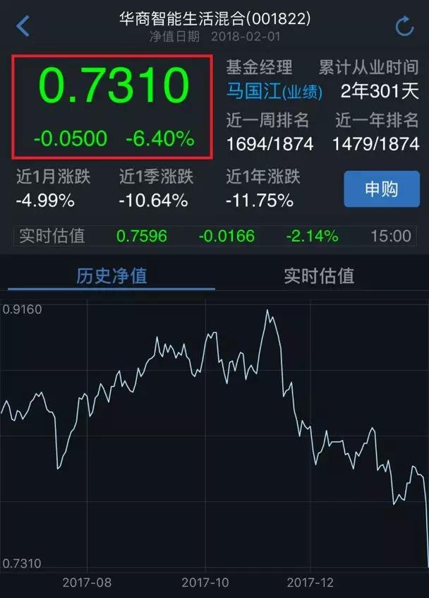 受到估值下调和昨日股市下跌的双重影响,华商智能生活昨日基金净值大跌了6.4%。