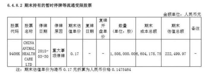 中国动物保健品自2015年3月停牌之前被多只QDII基金持有,股票停牌近三年,迟迟未见复牌,期间基金只能以下调估值方式应对。