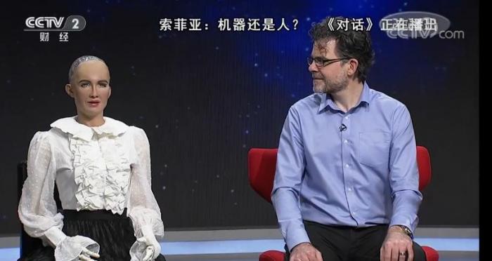 历史上首个获得公民身份的机器人索菲亚做客央视《对话》节目,与主持人陈伟鸿对话。当陈伟鸿问到索菲娅是机器还是人?是男还是女时,索菲娅有自己独特的见解。