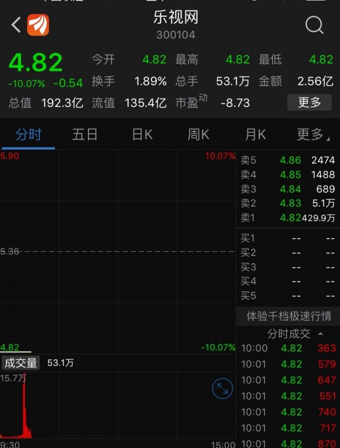 2月7日上午,乐视网盘中大幅放量,超过2亿资金抄底,截至10:01,换手率为1.89%。