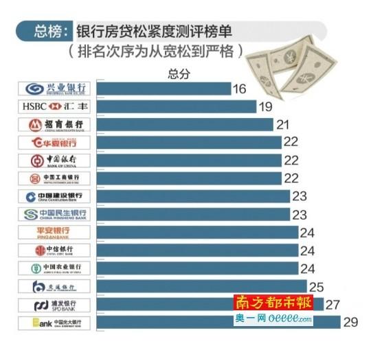 银行房贷松紧度测评:兴业银行最松,光大银行最紧