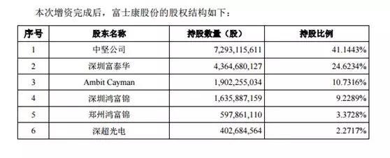 这家有着全球最大代工厂称号的企业,公司控股股东为中坚公司(发行前持股比例41.14%)。中坚公司为一家投资控股型公司,由鸿海精密间接持有其100%的股份。