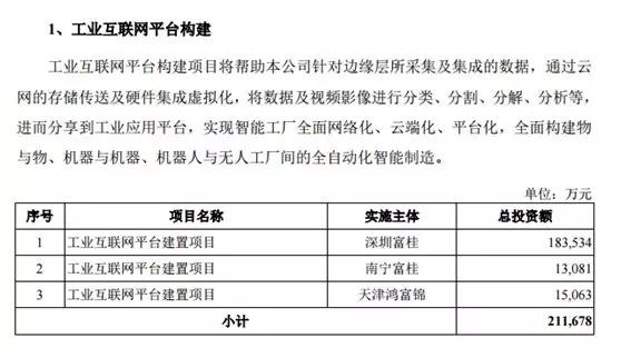 第一个工业互联网平台构建,总投资额21.17亿元。