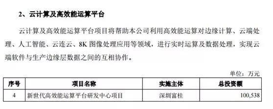 第二个云计算及高效能运算平台,总投资额10.05亿元。