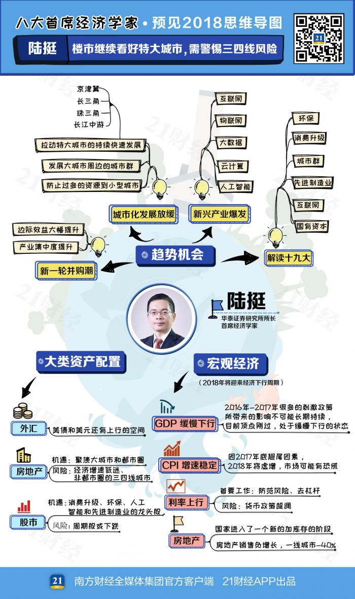 华泰证券研究所所长、首席经济学家陆挺认为,2018年将迎来经济下行周期,主要表现为GDP缓慢下行,因为2016年-2017年很多的刺激政策所带来的影响不可能长期持续。