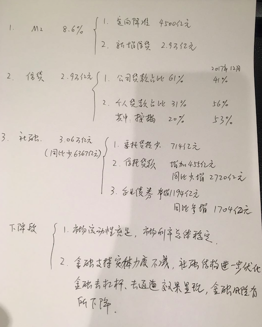 他说,信贷除总量创新高外,结构也有很大变化。公司贷款占新增贷款达61%,比2017年12月提高20个百分点。个贷从56%下降到31%。值得关注的是,个贷中房贷占新增贷的20%,反映出房产调控仍保持力度。