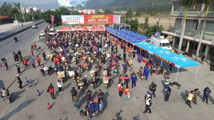 每年春运期间,广东地面都会有这么一群铁骑大军,背着大包小包骑着摩托车,在国道上奔向漫漫归家路。他们大多是来自广西偏远地区的村民,为了养家糊口来到广东打工,每年回家都十分不易。