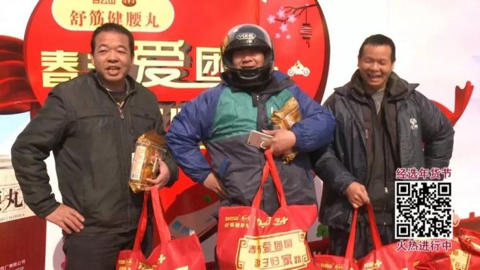 为了保障道路交通安全,护航返乡人员回家,2018年2月8日至2月9日期间,TVS1联合爱心企业陈李济舒筋健腰丸在返乡摩托车大军必经的G321国道肇庆洲林中石油站设置服务站,为“铁骑大军”提供量身定做的爱心大礼包:暖胃的热姜汤、保暖的护腰带、醒目的冲锋衣和反光马甲等,同时派出专业的医疗队伍,为长时间驾驶的“铁骑大军”提供舒缓按摩的爱心服务。途经服务站的李大哥告诉我们:“(我)应该五六点钟回到,一路回来的路上都有得吃,因为你们对我们的服务很周到,很感谢你们的爱心!”