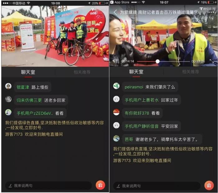 本次活动不仅得到爱心企业的支持,更是获得了众多网友的关注。2月8日、9日期间,触电新闻对服务站活动进行直播,观看人数超3万人次,网友们纷纷留言:“路上慢些”、“祝平安回家!”。