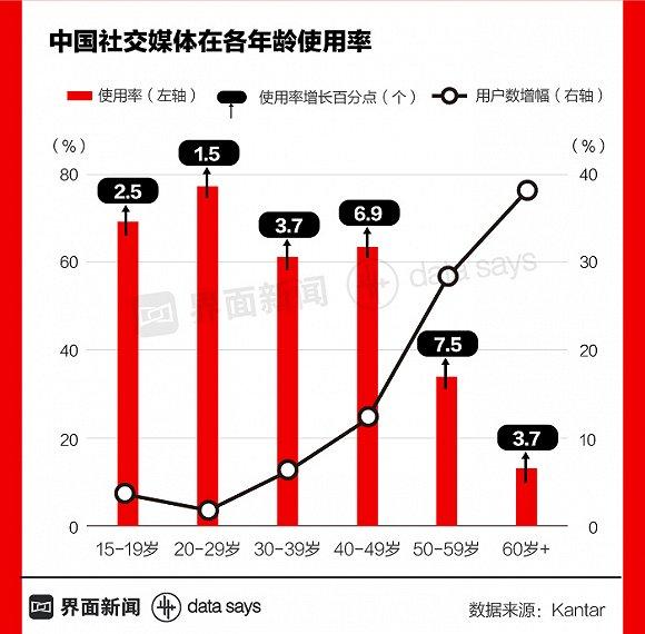 事实上,最近有越来越多的中老年人开始学习如何使用社交媒体。市场研究公司Kanta《2017中国社交媒体影响报告》显示,2017年新增的社交媒体用户以40岁以上人群为主,其中60岁以上的用户数增幅达到38%。