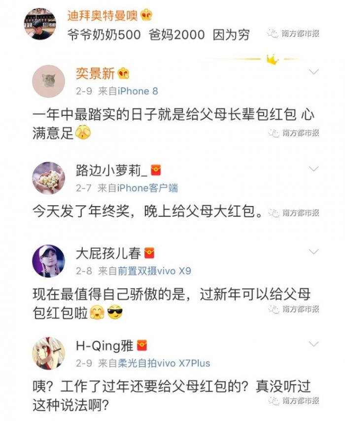 南都君最近做了一个小范围的调查:发现大家都好孝顺啊