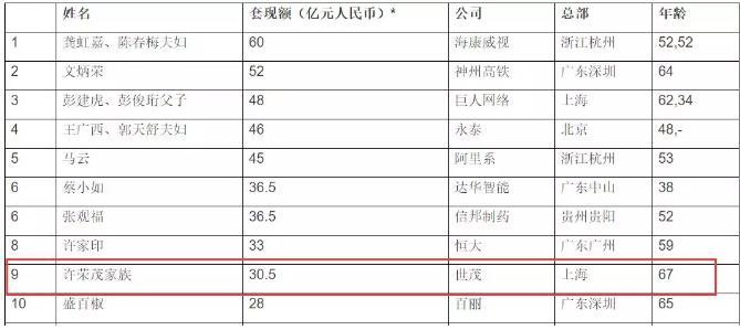 今年1月末,中新网报道还提到一件被富豪排行“曲解”的事:许荣茂上榜当月发布的《2017胡润套现企业家榜》,乍看起来是许荣茂因为巨额套现上榜,实际却是因为分红收益。