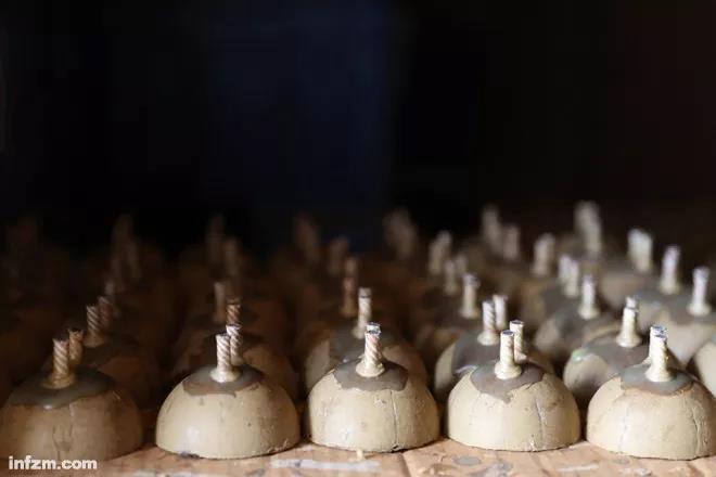 ▲湖南省浏阳市的一个烟花生产车间外,引信安装完毕后的礼花弹外壳,需要烘干固定。(南方周末特约摄影 张涛/图)