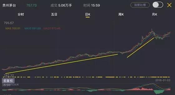 股王贵州茅台今年股价又创新高了,股价已突破700元,2018年以来,盘中一度达到800元。然而在2017年7月7日,贵州茅台收盘价仅为441.20元。2017年全年,股价涨幅达到112.8%。