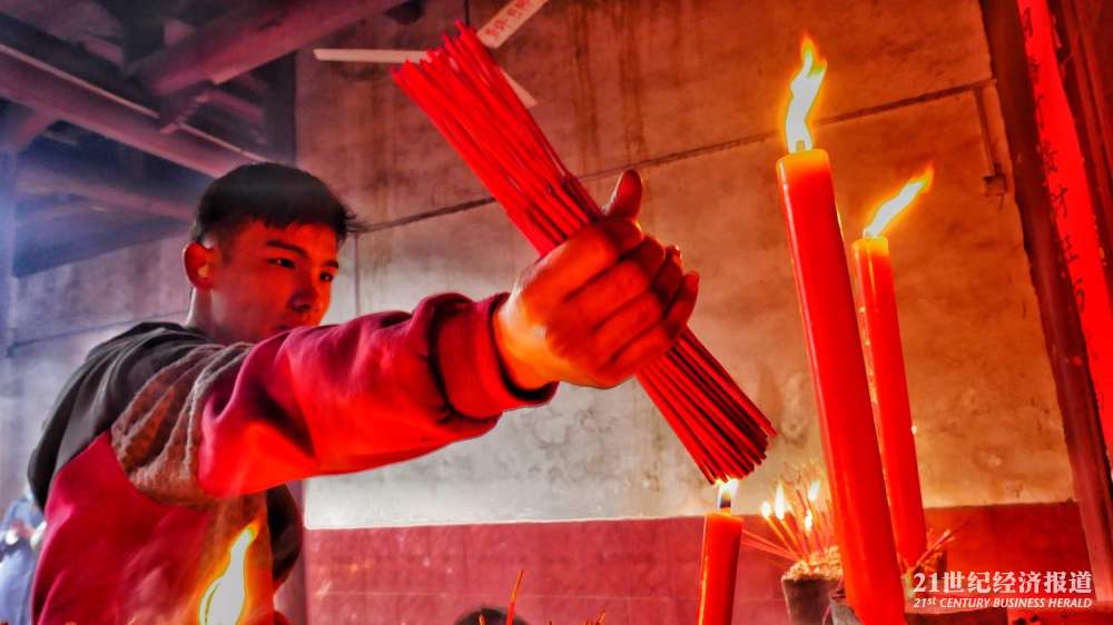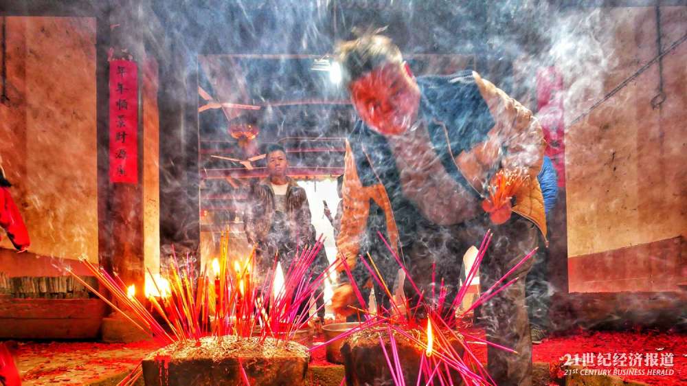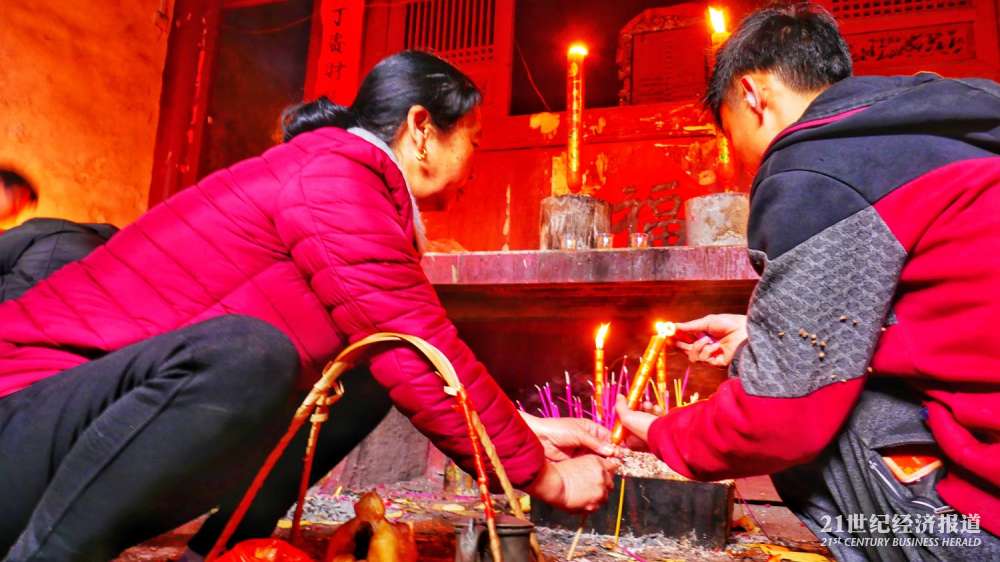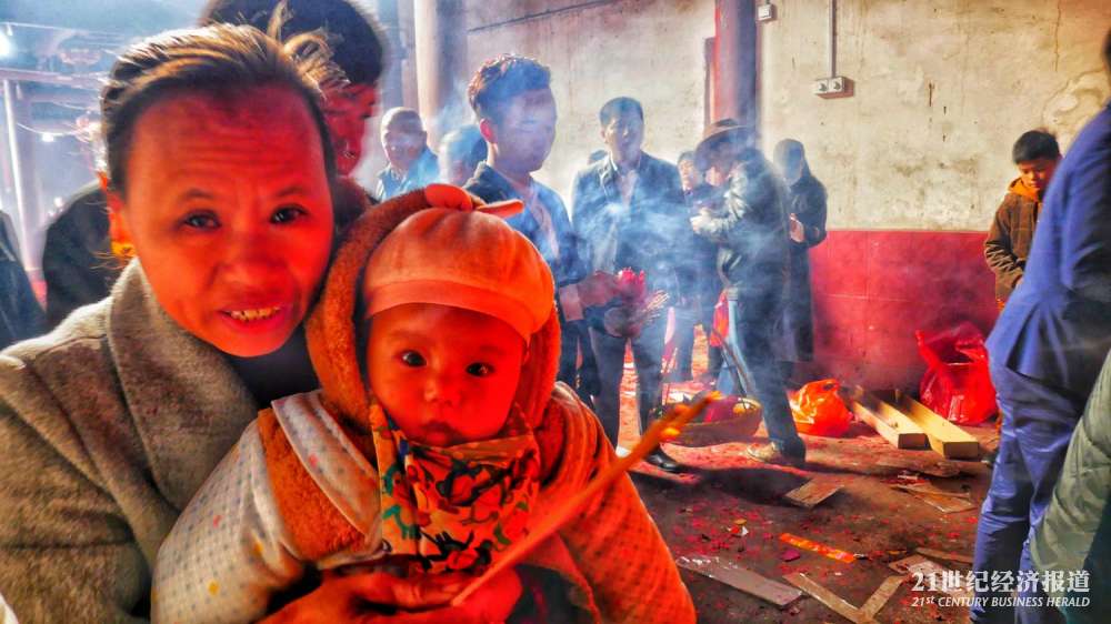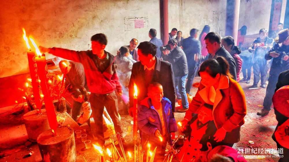 农历初二一早,家里添了男丁的纷纷来到祠堂祭拜祖先