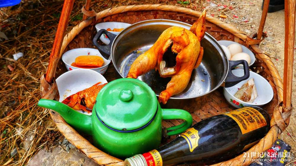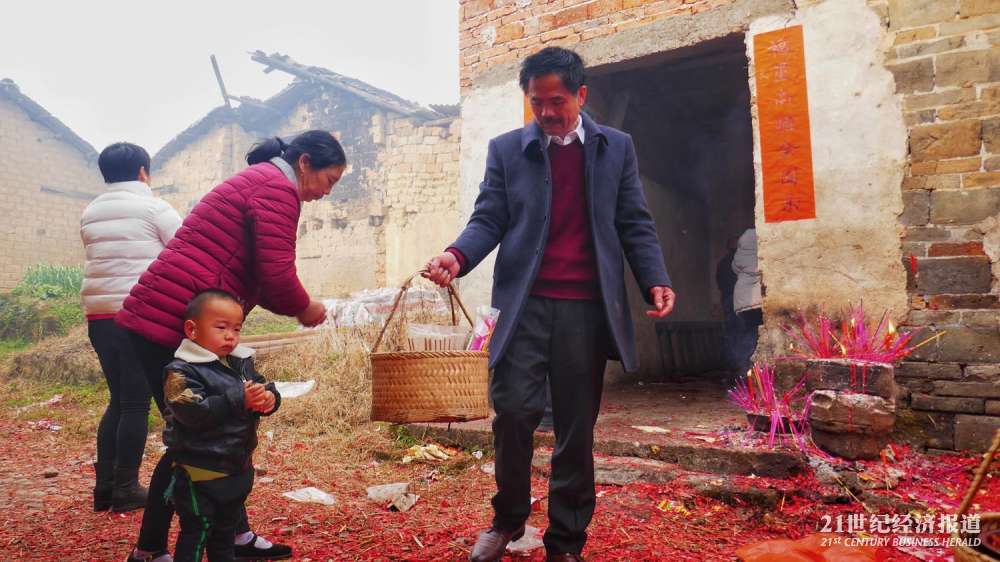 (乌瓦\江西赣南)每年农历正月初二,是江西省龙南县田心围村举行一年一度的客家“添丁炮”活动。村民们在家族祠堂前燃放鞭炮,寓意来年人丁兴旺,喜事连连,“添丁炮”的过程场面颇为壮观。图为田心村民提着好酒好菜前来祠堂祭拜。