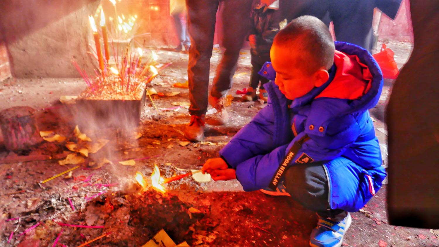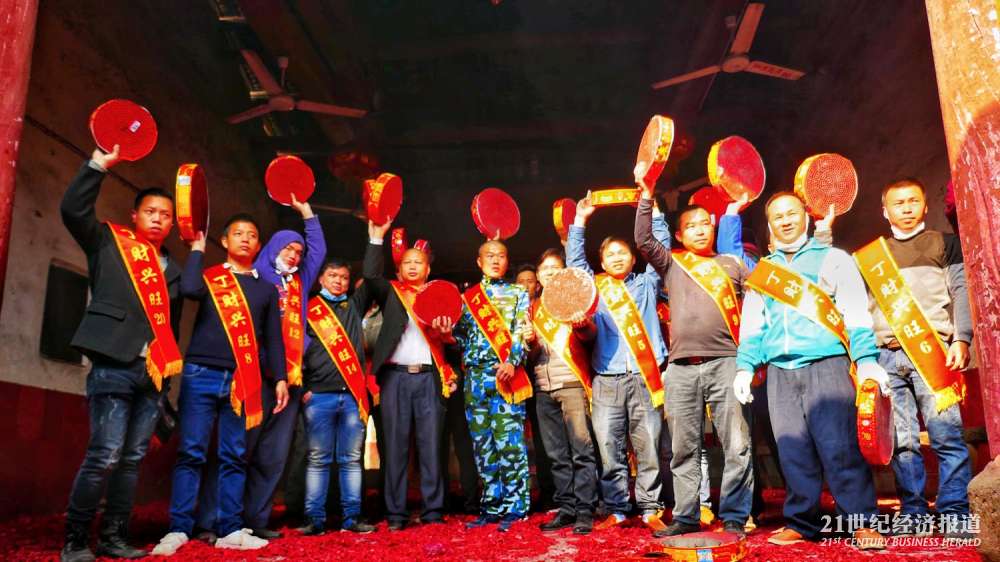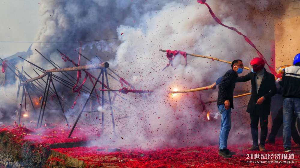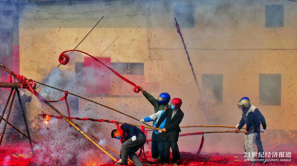 添丁炮重头戏开始 一串串鞭炮燃响 象征着来年“人丁兴旺”
