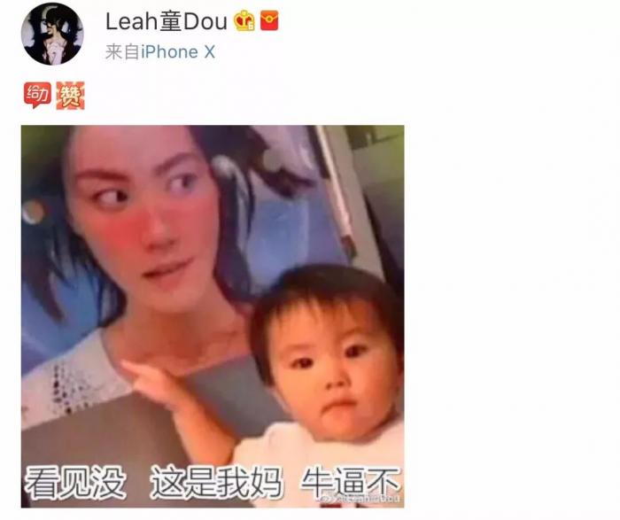 然而,真正让我感慨的,是窦靖童在微博上发的一张图片:看见没,这是我妈,牛不?