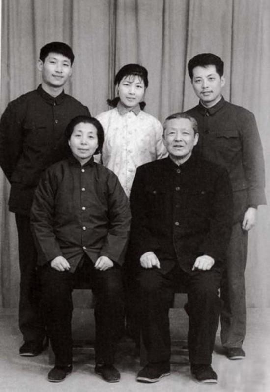 1975年,习仲勋和齐心与儿女在洛阳红旗照相馆合影。后排左起:儿子习近平、女儿习安安、女婿吴龙。来源:《习仲勋画传》