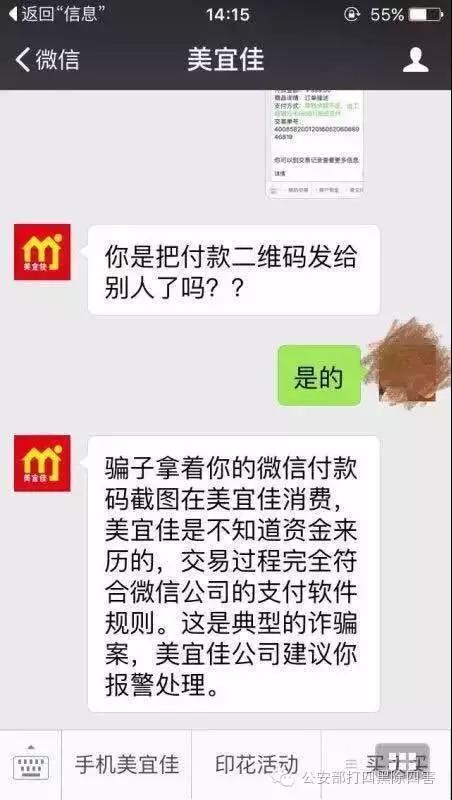 杨女士随即加了这个公司的公众号进行询问,对方告知是骗子拿着微信付款码截图在美宜佳消费,是典型的诈骗案,建议杨女士赶紧报警处理。