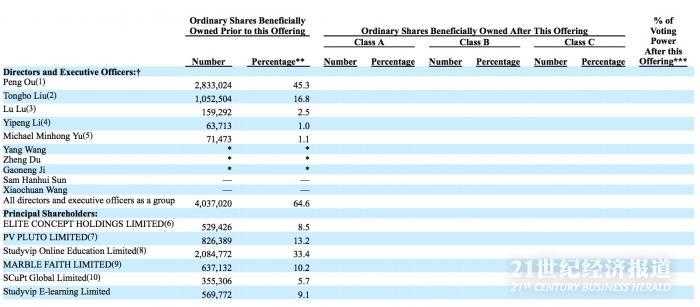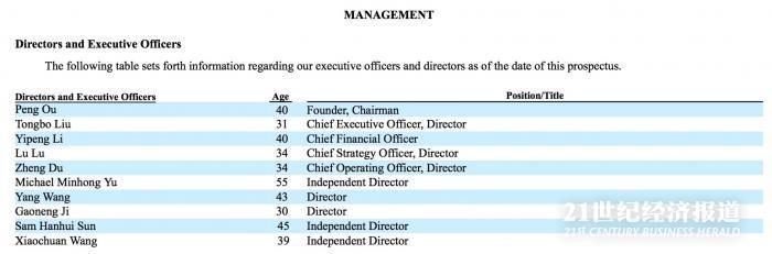 招股书显示,尚德机构董事会由董事会主席欧蓬、尚德机构CEO刘通博、CSO 吕露、COO 杜铮、汪洋、 吉高能组成;尚德机构的高管层还包括CFO李亦鹏;三位独立董事分别是新东方董事长俞敏洪、去哪儿前总裁孙含晖、 搜狗CEO王小川。