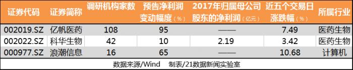 2月12日-2月25日机构调研股中,有27家披露业绩预告或业绩快报。按照预增上限或快报测算,3股预计2017年度净利润同比翻倍。