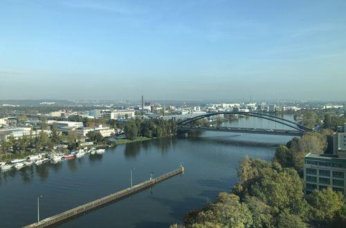 有意思的是,在金融大厦的对岸,美因河畔的另一侧散落着美术馆和其他古建筑,不少人沿着河边慢跑、散步或骑车,悠然自得的氛围和对岸浓厚的商业精英气息形成了鲜明对比。没想到美因河的存在,能让一个以制造业闻名于世界的硬汉般的德国,表现出如此温柔浪漫的一面。