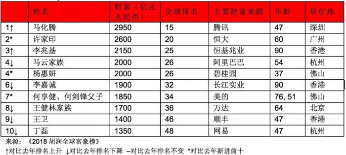 47岁的马化腾财富2950亿元正式成为全球华人首富,他是胡润百富榜创立以来第13位中国首富。全球第15位,比去年上升23位。去年年底腾讯频繁参与零售。50天内,先后战略投资永辉超市、超级物种、家乐福和万达商业,就连男装品牌商海澜之家也于今年1月确认向腾讯出让5%的股份。
