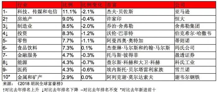 食品饮料、金属和矿产行业今年表现不俗,诞生的富豪数量较去年分别上涨32%和31%。所有行业都呈现正增长,制造业在前10个行业中增幅最低,为5%。房地产从第四上升到第二。