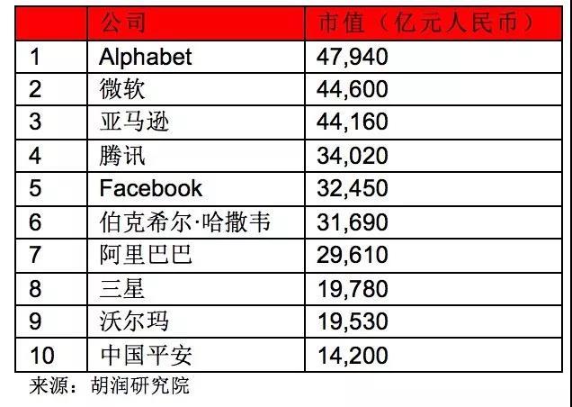 在十亿美金富豪的企业中,Alphabet、微软和亚马逊市值最大,都超过4万亿元。来自中国的腾讯、阿里巴巴和中国平安是唯一跻身前十的非美国公司。