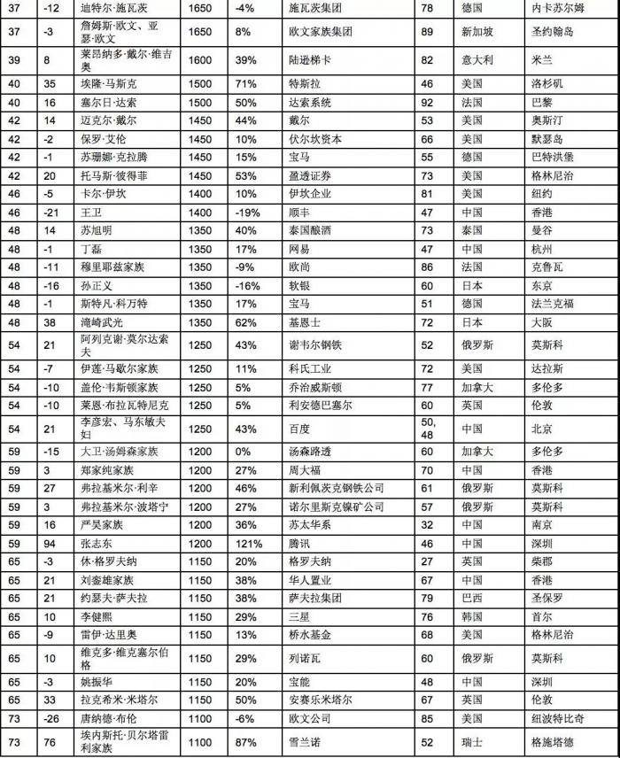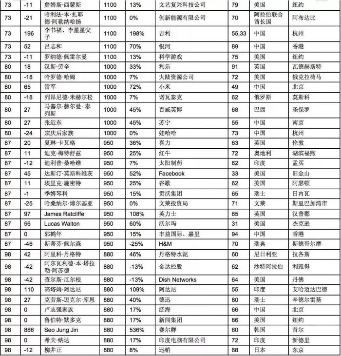 上榜富豪平均年龄63岁,比去年年轻一岁。