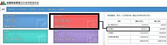 来自国家新闻出版广电总局电影局的数据显示,截至2018年2月28日下午3点40分,中国电影内地市场2月票房产出突破100亿元大关。