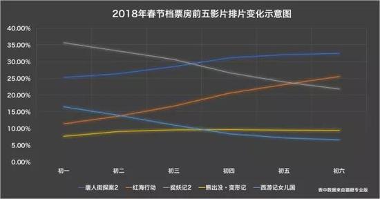 《捉妖记2》35.6%、《唐人街探案2》25.2%、《西游记女儿国》16.5%、《红海行动》11.4%、《熊出没·变形记》7.7%;