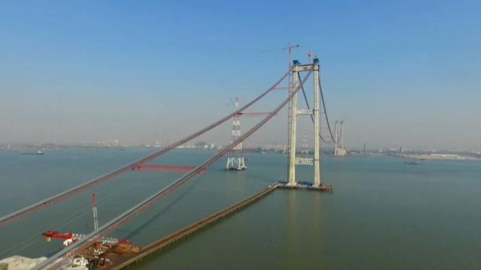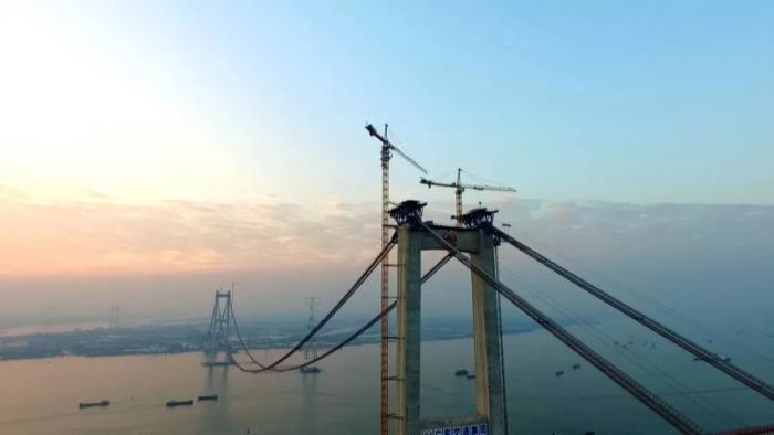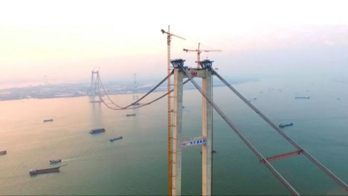 目前虎门二桥全线主体和主塔,已经顺利安装完成,即将进入吊装阶段,预计在今年上半年全部安装完毕。